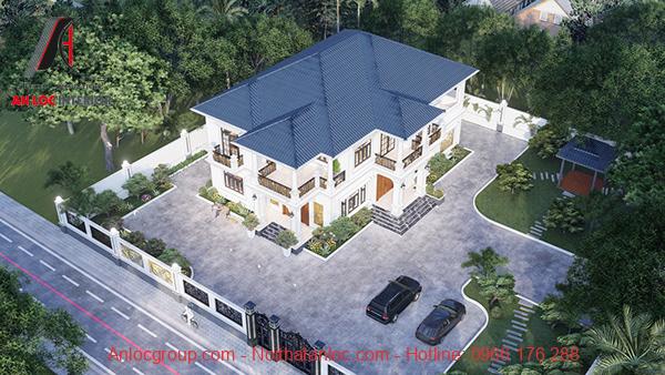 Mẫu thiết kế biệt thự vườn 250m2 mái thái đẹp